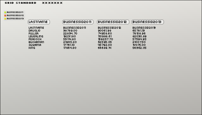 1 LASTNAME BUSINESSID2011 BUSINESSID2012 BUSINESSID2013